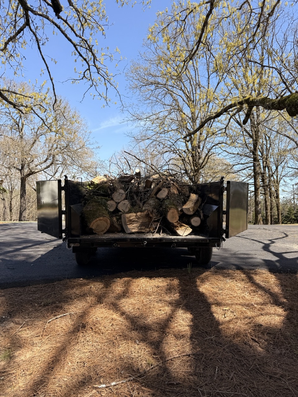 This cleanup included mixed debris from a fallen tree, including larger wood sections and lighter limb material. We worked the pile down in a controlled way, loaded as we went, and cleaned up the smaller debris that gets missed on quick storm cleanups.