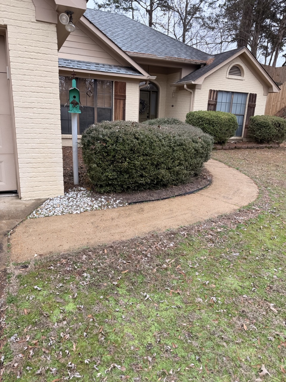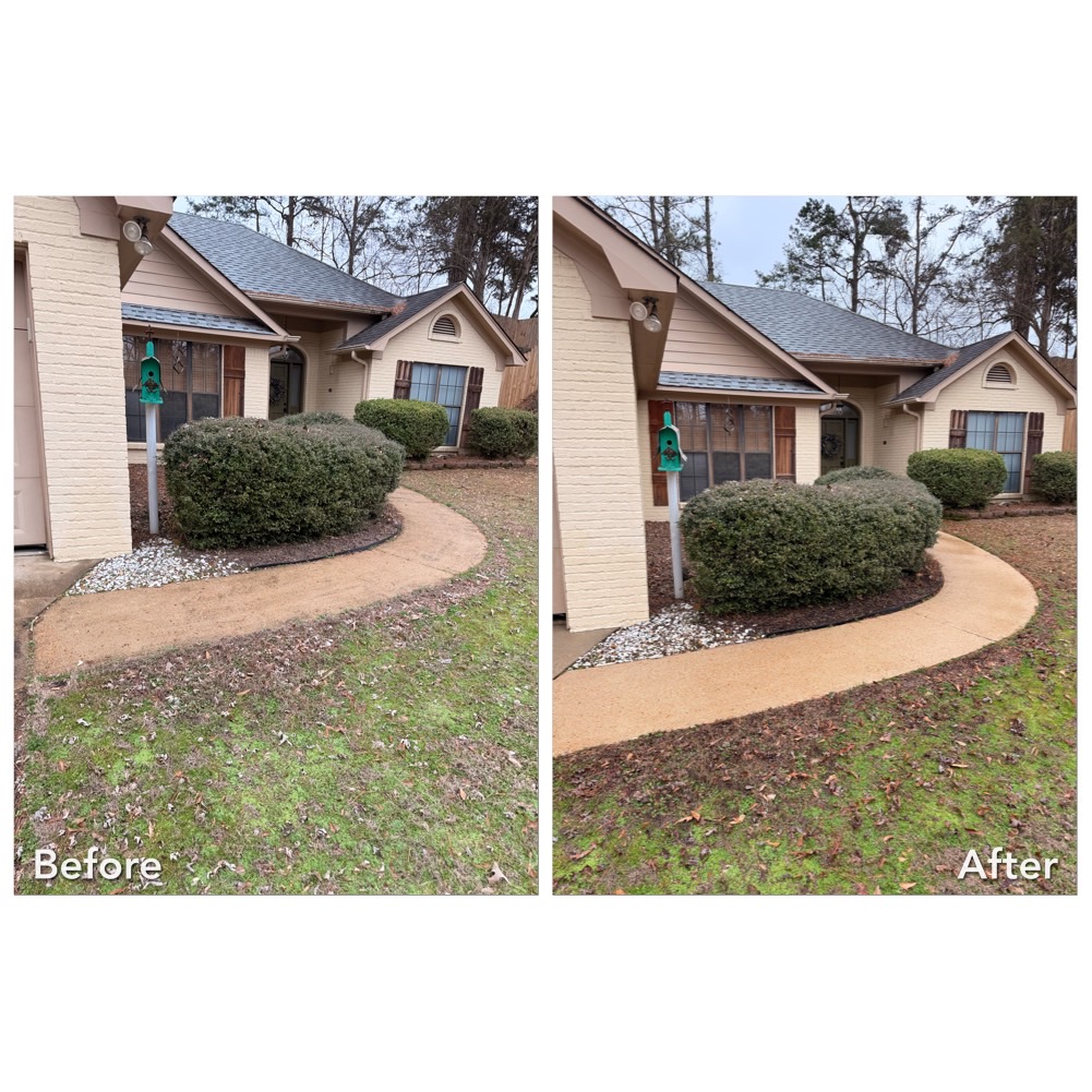 Driveways in Oxford pick up a little bit of everything. Dirt film, algae staining in shaded areas, tire marks, and runoff lines that make concrete look older than it is. For this project in Oxford, MS, Clayton Professional Services cleaned a residential driveway and walk areas to restore a cleaner, more even finish.